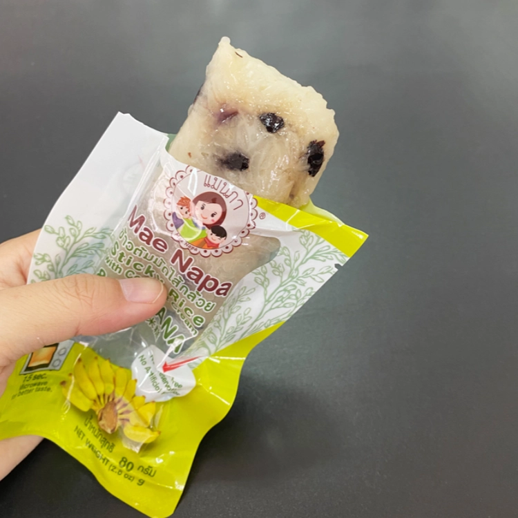 태국 전통 디저트 중에서 코코넛 밀크가 들어간 찹쌀밥이 인기에요. 코코넛 향이 너무 좋은 스티키라이스, 과일과 함께 먹는 태국 영양 간식이 바나나 이파리 대신 진공포장 되어있어서 보관도 편리하고 간편하게 먹을 수 있어요.